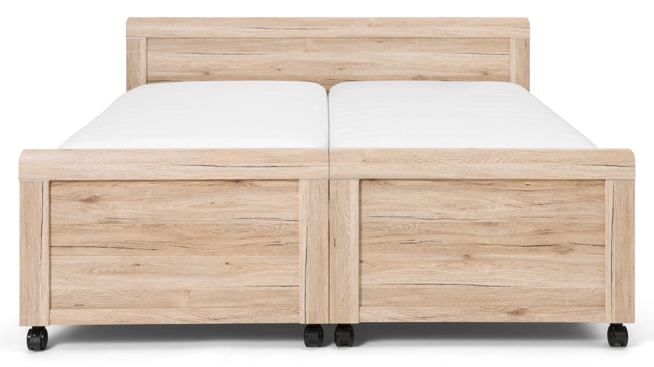 Breng maximaal comfort in je slaapkamer met dit charmante, uitrijdbare bed Elba. Een stevig comfortbed, waarmee je jaren vooruit kunt. Het tweepersoonsbed bed deel je eenvoudig in tweeën. Ideaal bij het schoonmaken of het verschonen en opmaken van je bed. Zo hoef je je lichaam niet langer meer extra te belasten en bespaar je je rug. Daarnaast stap je dankzij de prettige, hoge instap eenvoudig in en uit bed.