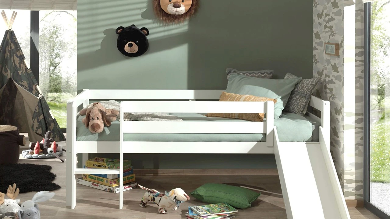 Met de Halfhoogslaper Pino met glijbaan is slapen een heuse beleving voor je kind. Zo hoog van de grond kan je kind de wildste avonturen meemaken. En wat denk je van de fantastische glijbaan die aan de halfhoogslaper vast zit. Daarmee is opstaan een feestje.