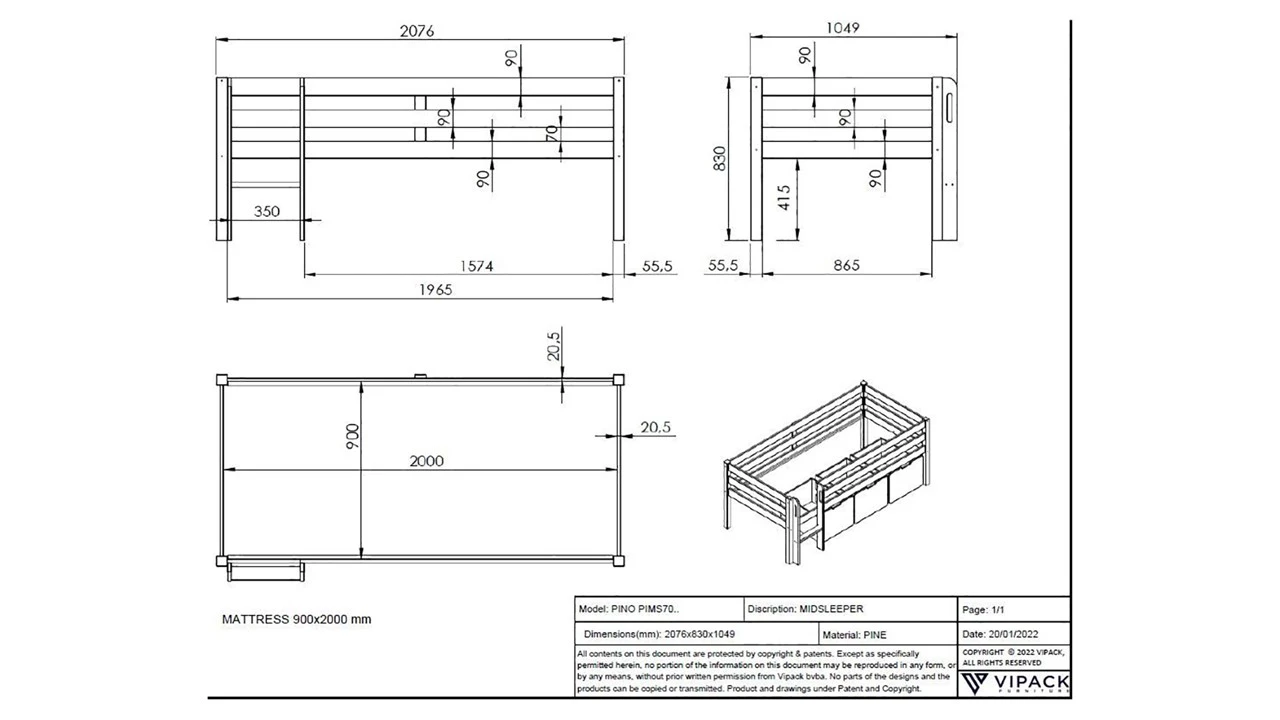 Met de Halfhoogslaper Pino is slapen een heuse beleving voor je kind. Zo hoog van de grond kan je kind de wildste avonturen meemaken. En door het minimalistische design kan je kind eenvoudig het bed omtoveren van piratenschip tot koets en weer terug.