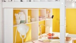 Breid hoogslaper Kris eenvoudig uit met verschillende accessoires uit de Flexworld collectie zoals een bureauplank, boekenplanken of een handig aanklikbaar plankje voor bij het slaapgedeelte. Voorbeelden hiervan zie je op foto twee, drie en vier. Filter voor alle accessoires op het merk Flexworld bij bedden.