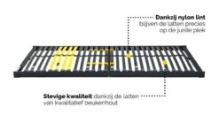 Bepaal dankzij een eenvoudig schuifmechanisme heel gemakkelijk waar je extra veerkracht en ondersteuning bij je heupen en schouder kunt gebruiken. De latten zitten in een duurzame, rubberen houder. Doordat de latten veren, bieden zij je optimaal ligcomfort. De lattenbodem Bossflex 400 vlak is geschikt voor vrijwel alle typen matrassen en ledikanten. De bodem is geschikt voor personen met een gewicht tot 120 kilo. Ben je wat zwaarder? Kies dan voor de Bossflex 600.