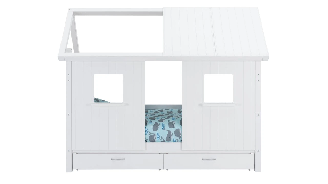 Sofabed Puck met dakframe en half dak wordt geleverd inclusief bedbodem en dakframe met half dak, exclusief matras.